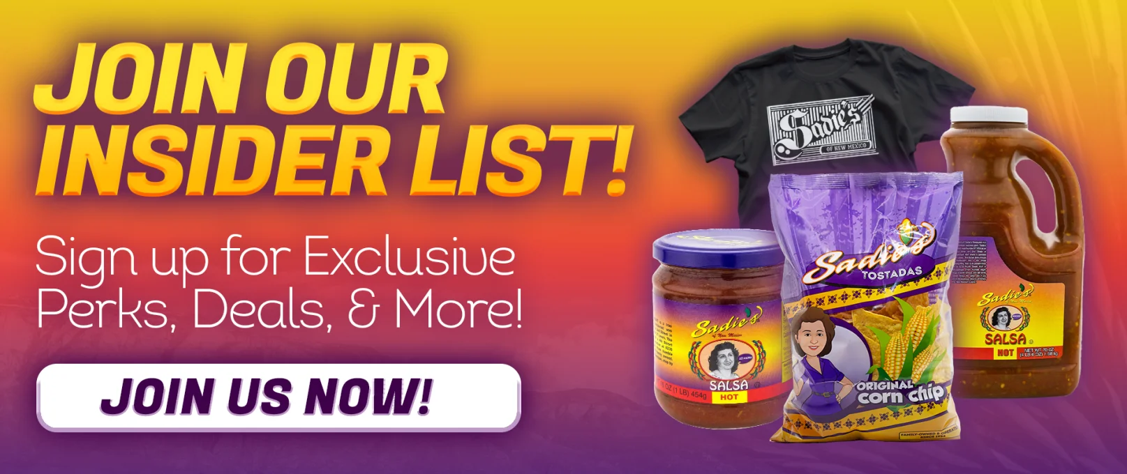 Sadie’s Salsa isn’t just any salsa—it’s a jar of New Mexico tradition. Hearty, fresh, and packed with flavor and spice, it’s been a favorite for over 50 years. Born in Albuquerque and loved nationwide, we keep it simple, quality, and always true to New Mexico.
